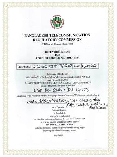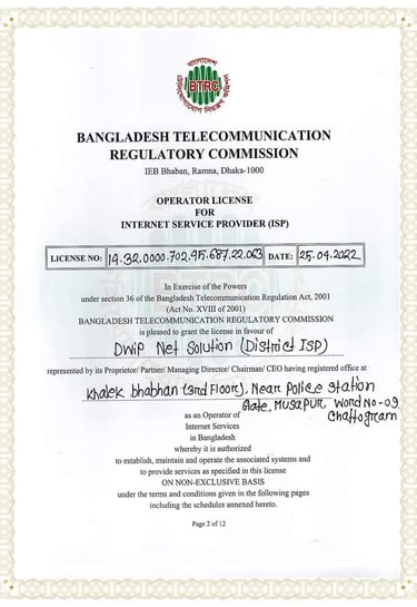 We are BTRC approved District Licenced ISP in Chattogram, mainly focused on Sandwip chattogram. Connecting all over sandwip since 2022.